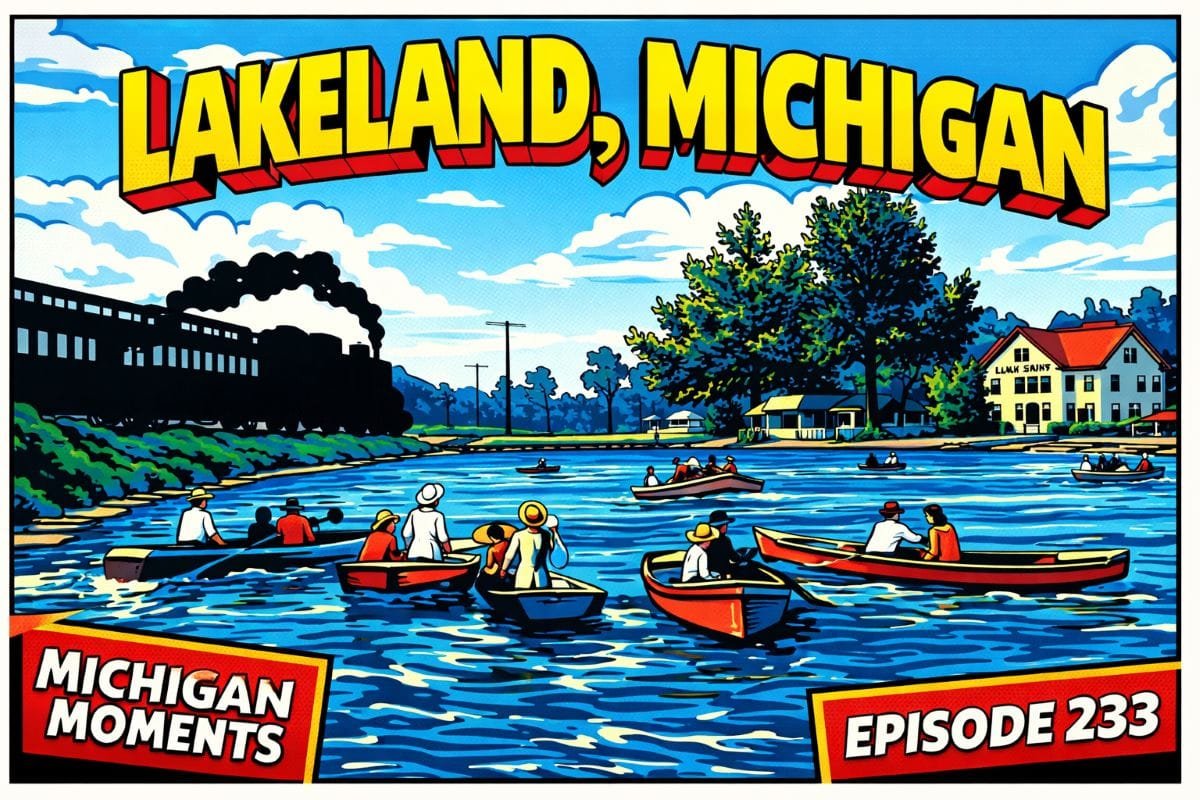 This Michigan Moments episode explores the history of Lakeland, Michigan, from the late 1800s through the early 20th century. Located in Livingston County, Lakeland developed as a railroad-to-resort transfer point where passengers arrived by train and continued by boat onto Zukey Lake and the surrounding chain of lakes.