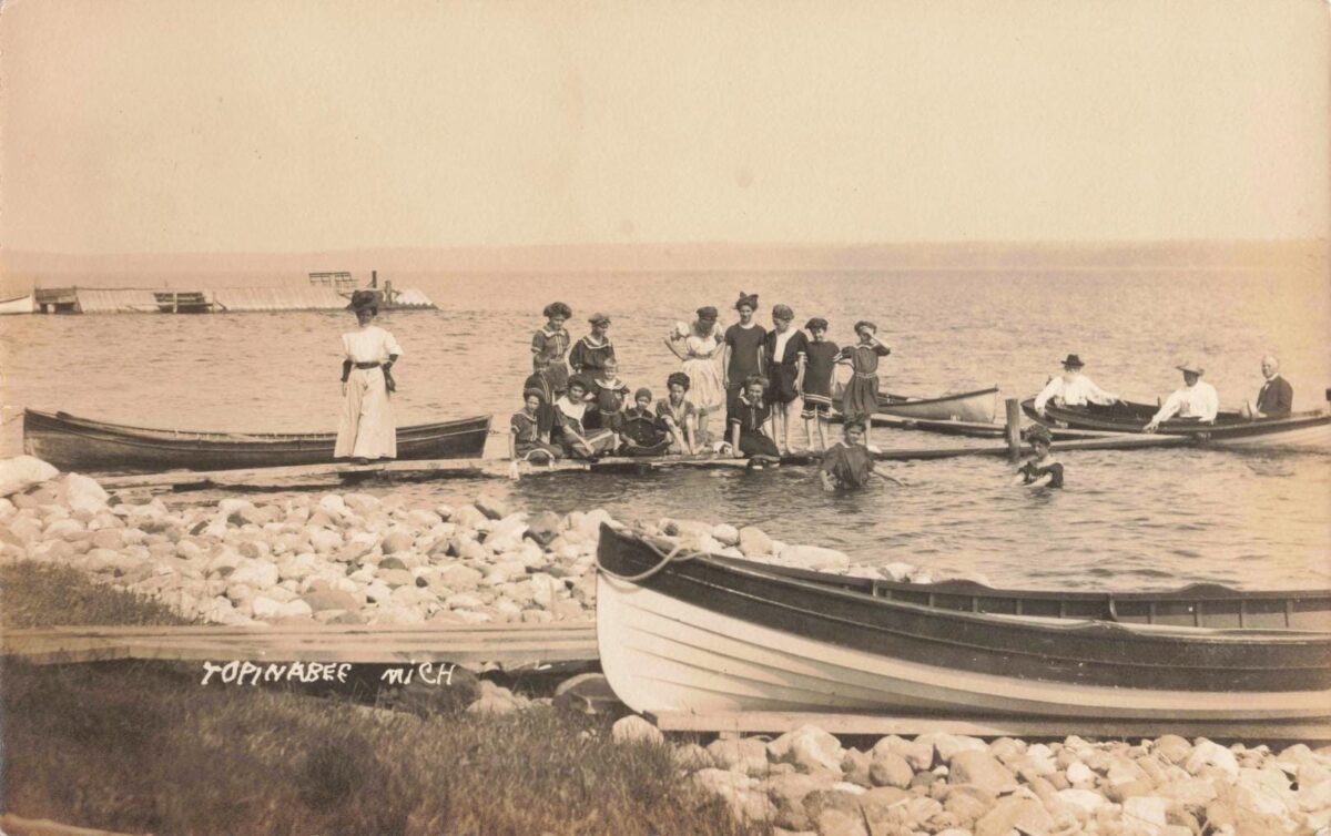 Topinabee’s fortunes rose with the Inland Waterway, a 40-plus-mile chain of rivers and lakes connecting Crooked and Pickerel Lakes to Burt and Mullett and out to Cheboygan. Boats with names now etched in memory—Topinabee, Ida L, Ida L II—made regular calls at the dock. Passengers stepped ashore for supper, a stroll, and sometimes a dance before sailing on. In photos from the era, you can see the calm lake, the neat rows of docks, and the light clothing of a summer crowd. The history of Topinabee, Michigan, cannot be told without these hulls and whistles.